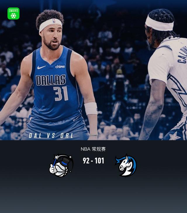 第四节魔术弗兰兹-瓦格纳拿下10分,独行侠杰登-哈迪拿下10分,最终魔术92-101不敌独行侠